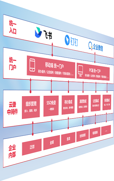 对协作平台提供支持服务,,,支持企业应用与协作平台对接,,包含组织同步、、、消息集成、、、待办集成等。。支持目前主流的协作平台:钉钉、、、企微和飞书。。